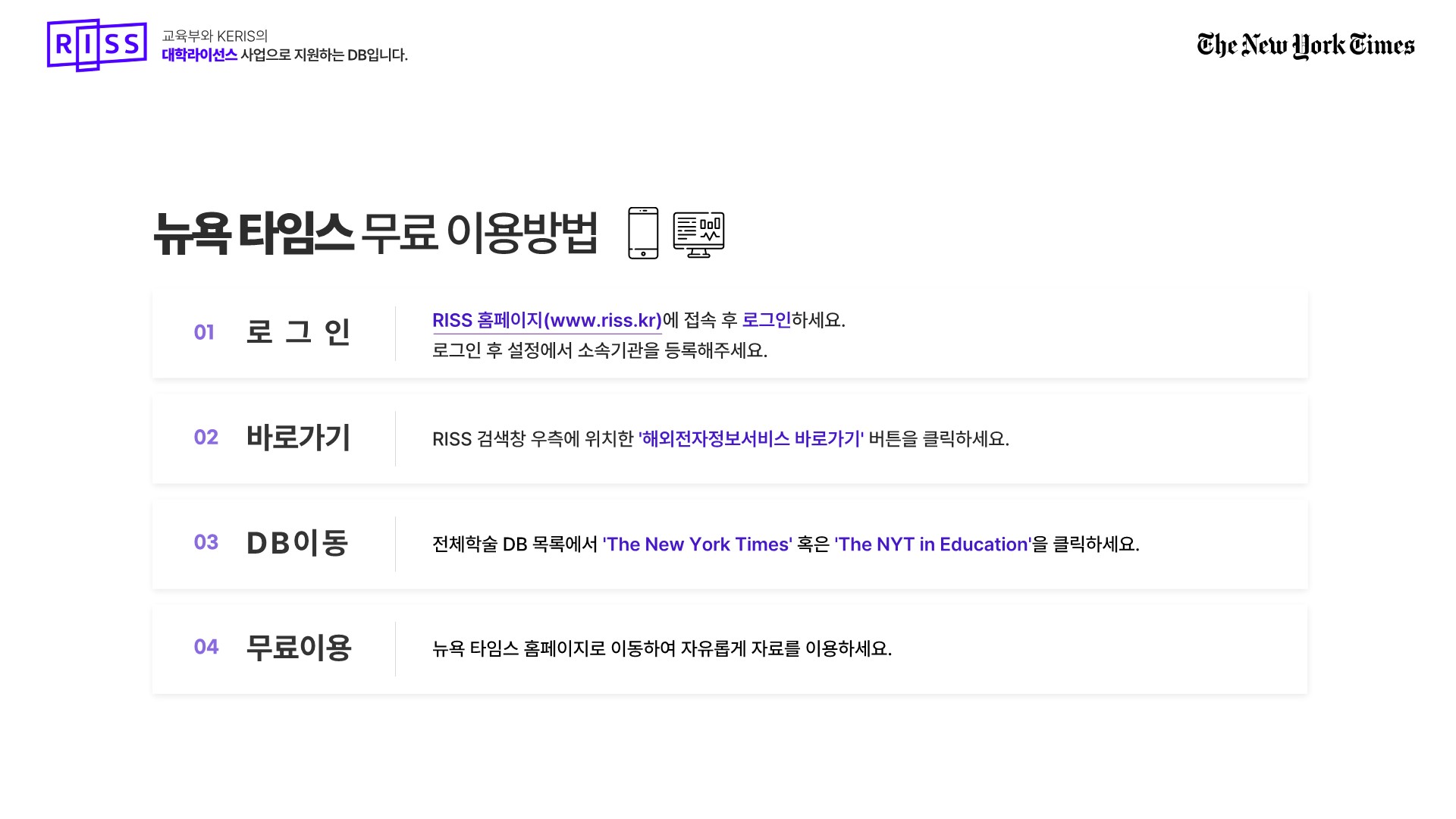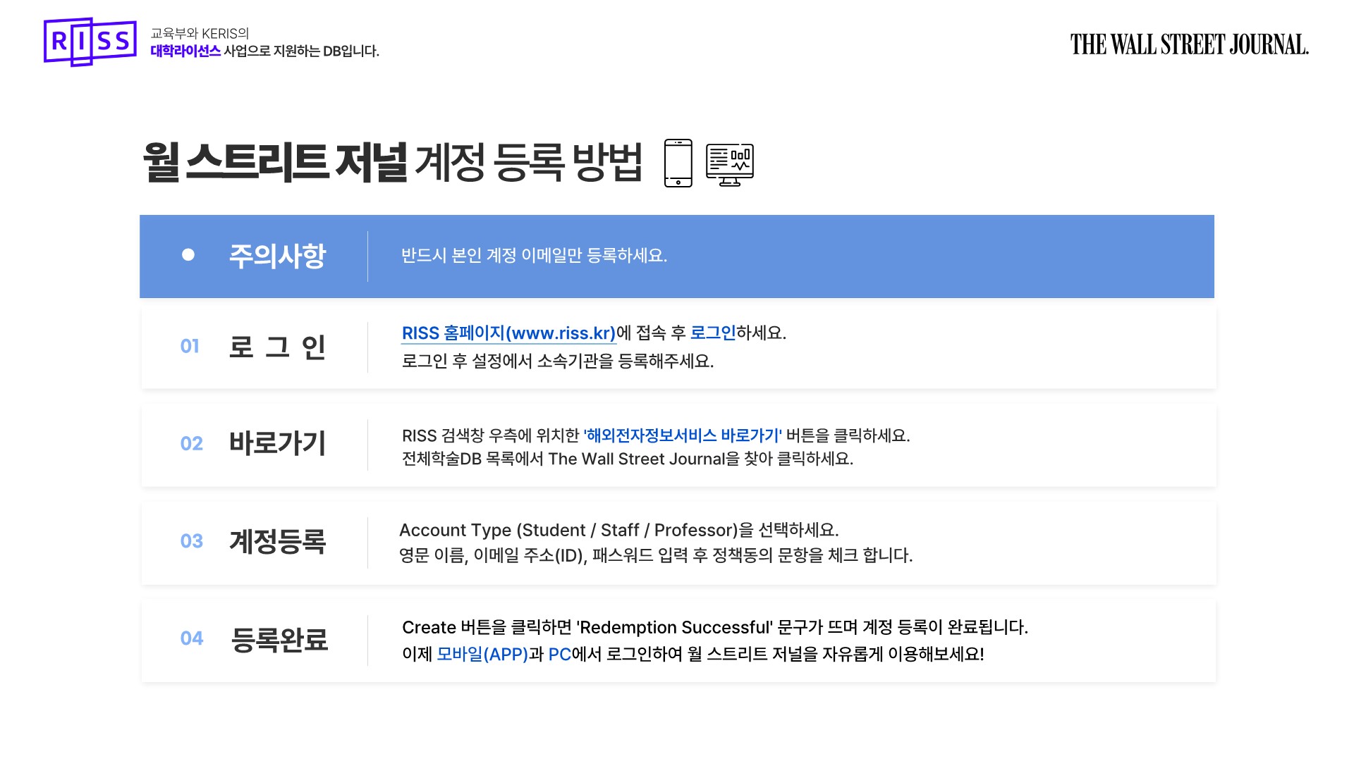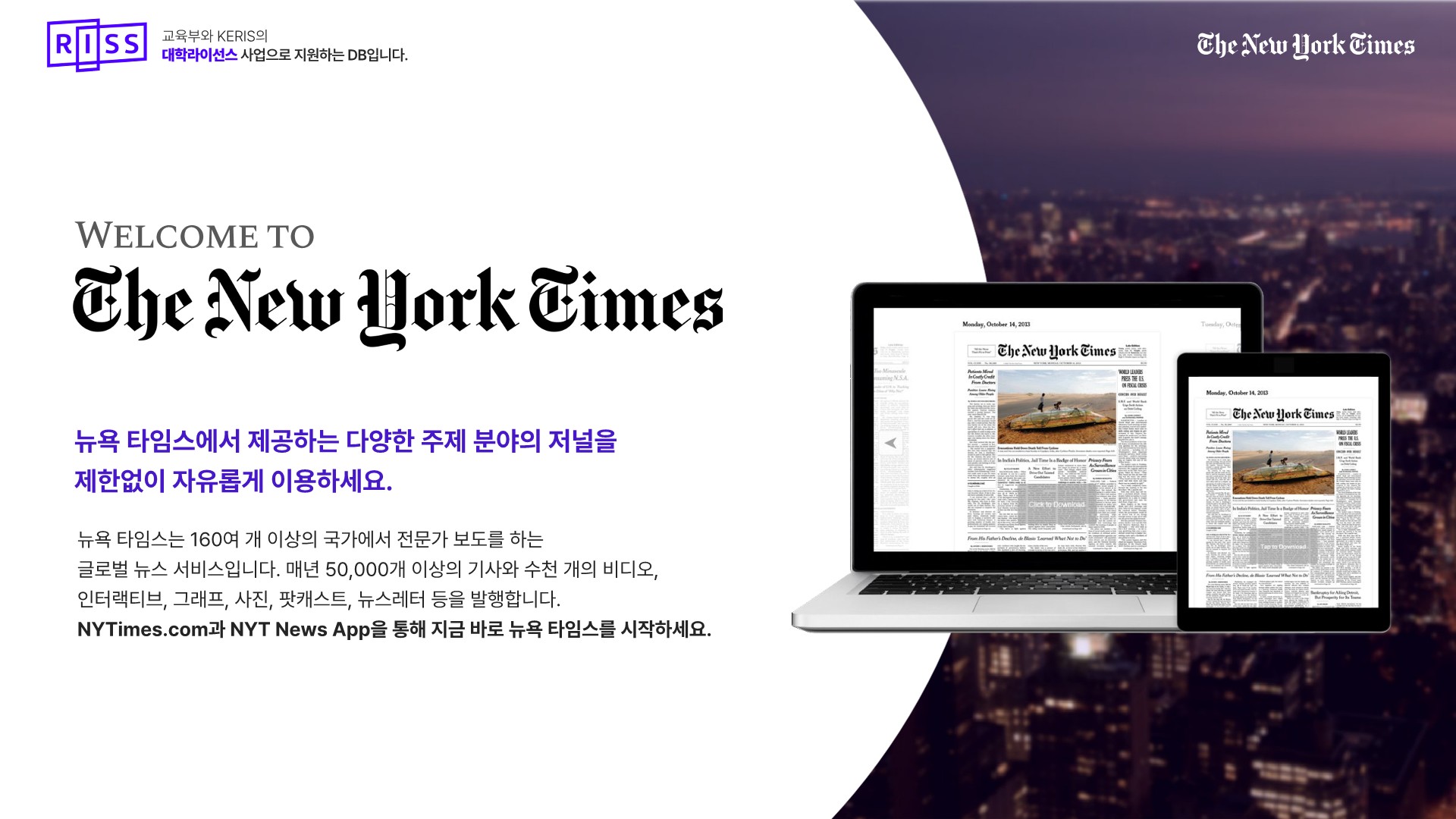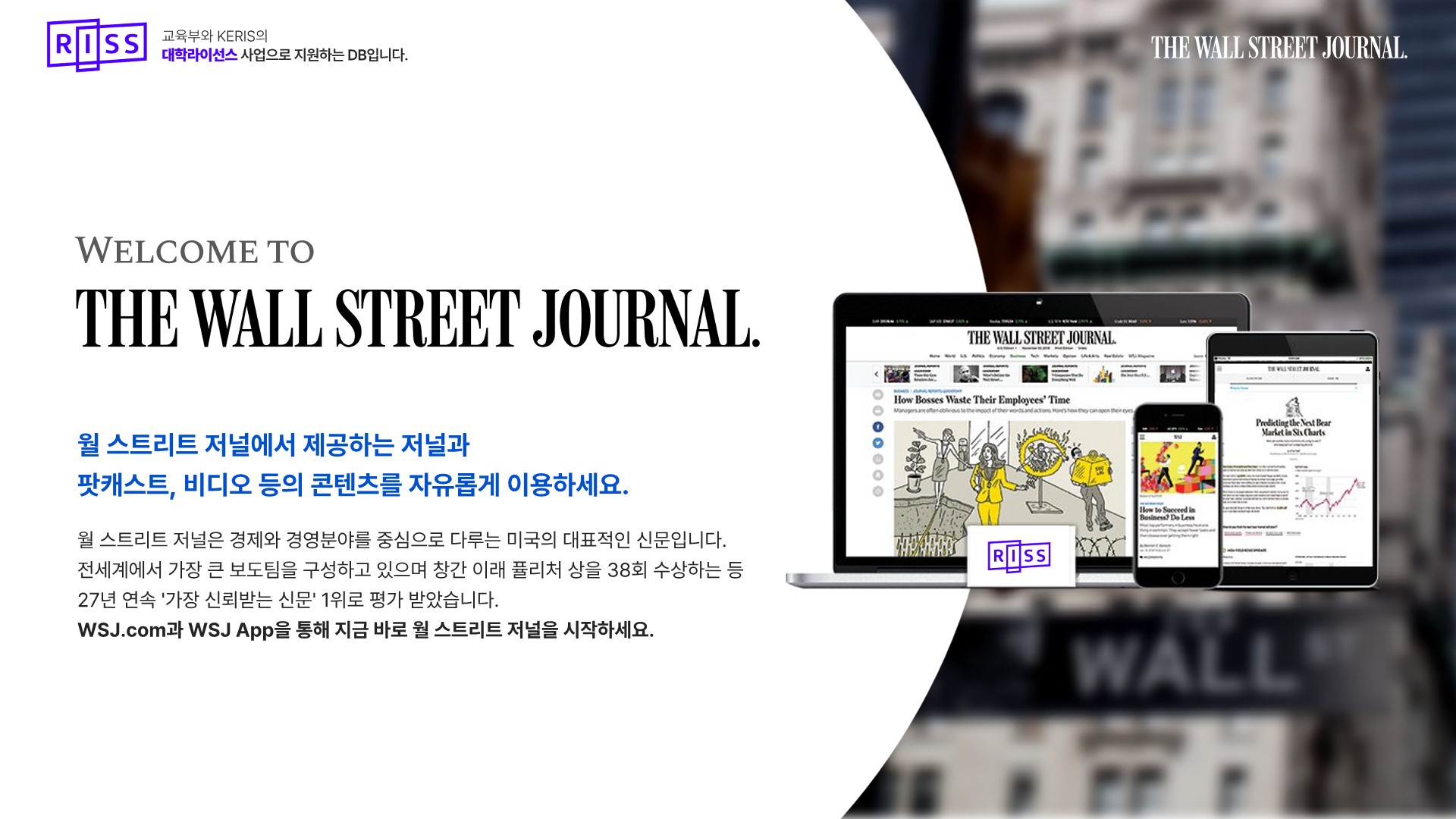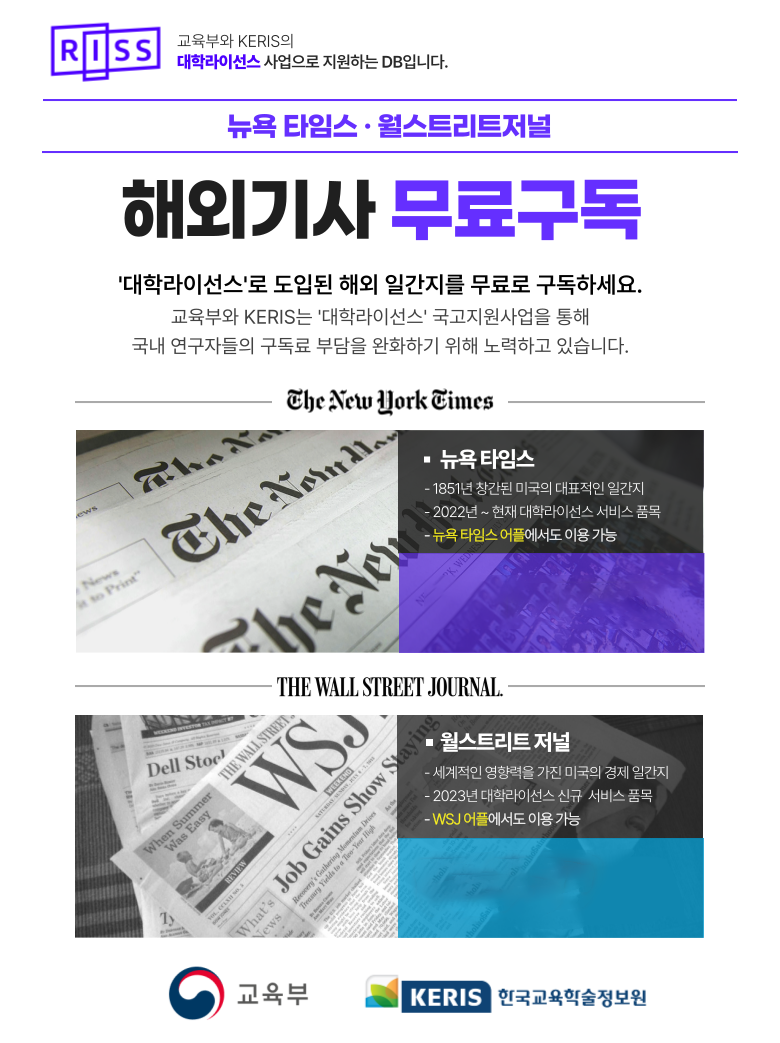 대학라이선스 해외 일간지(NYT, WSJ) 무료이용 안내