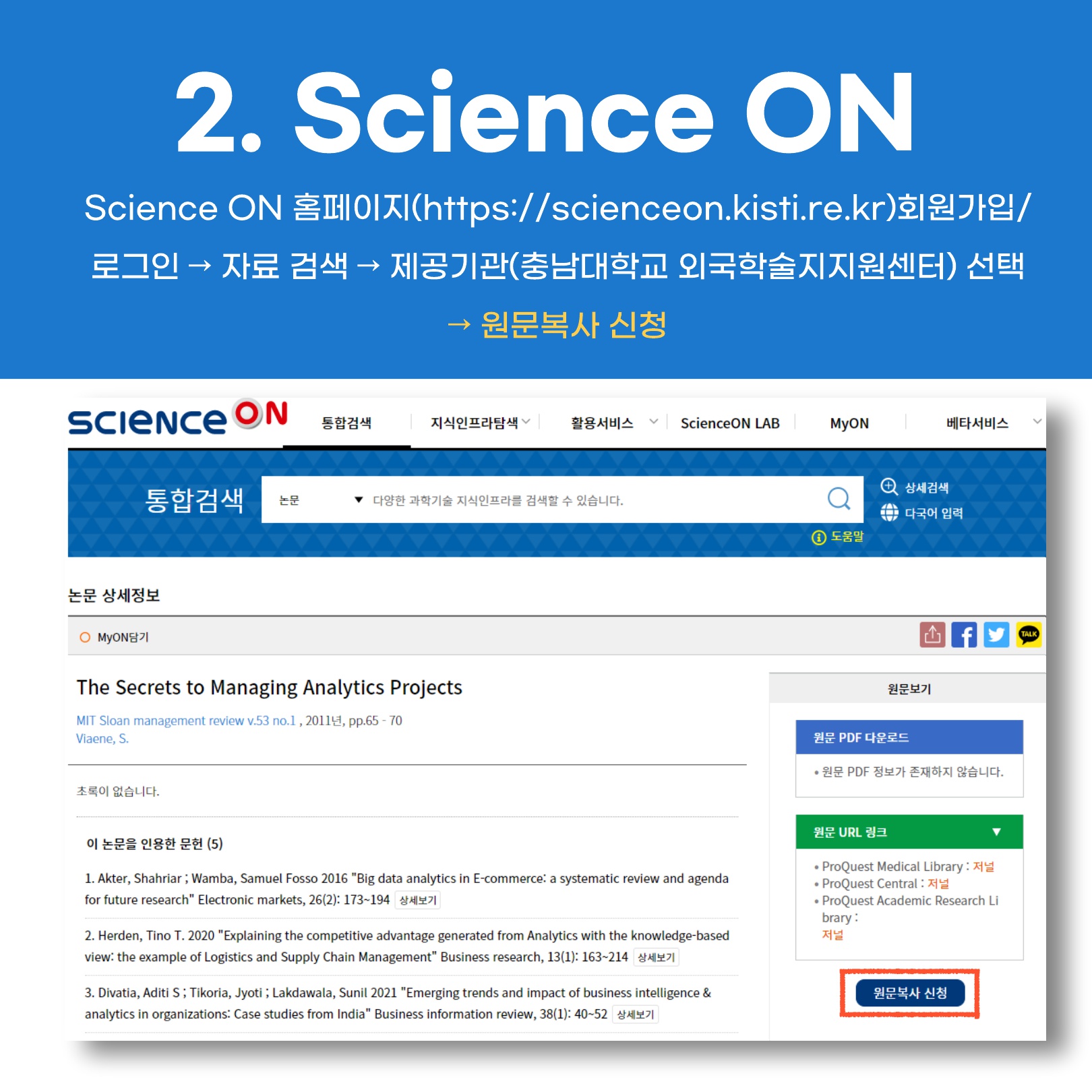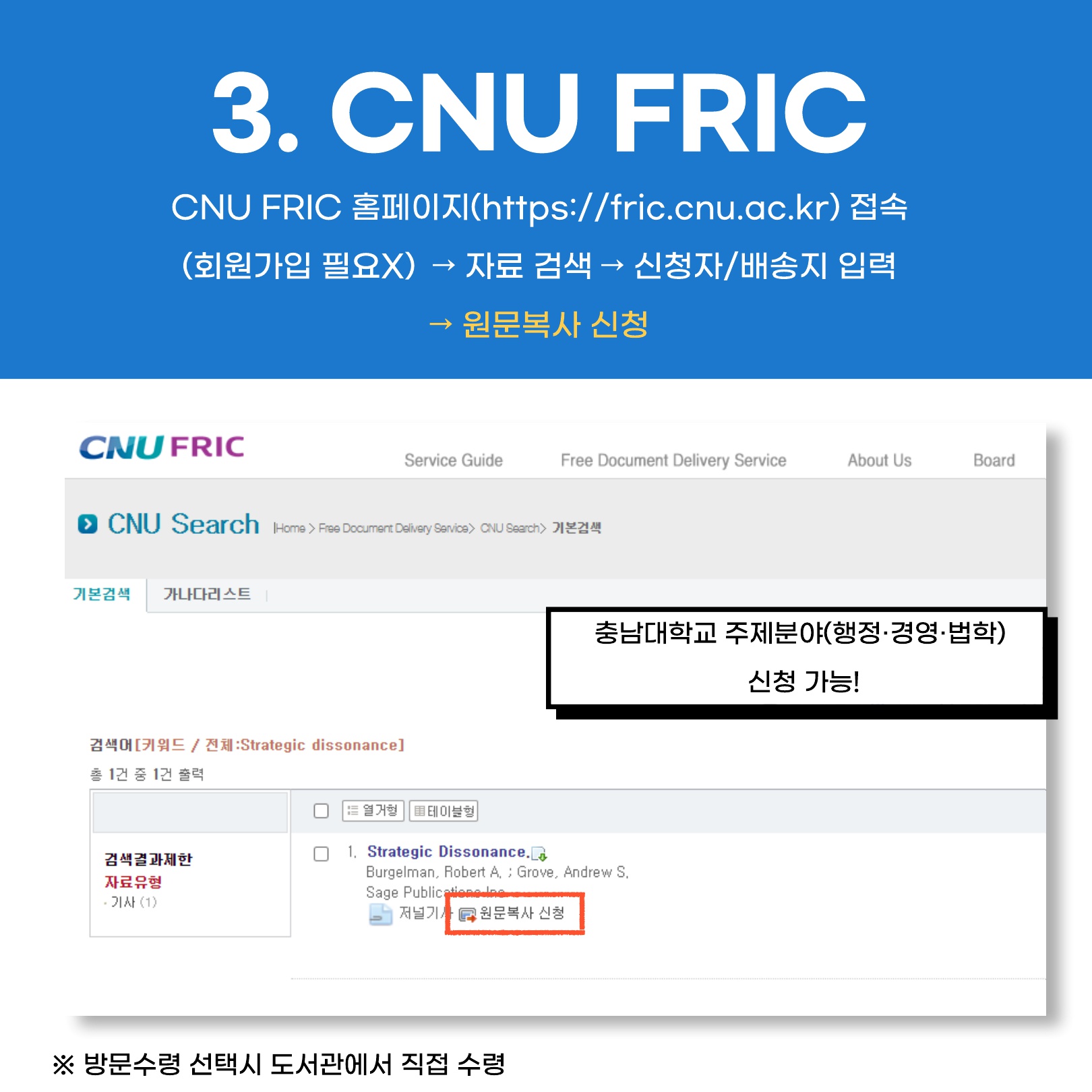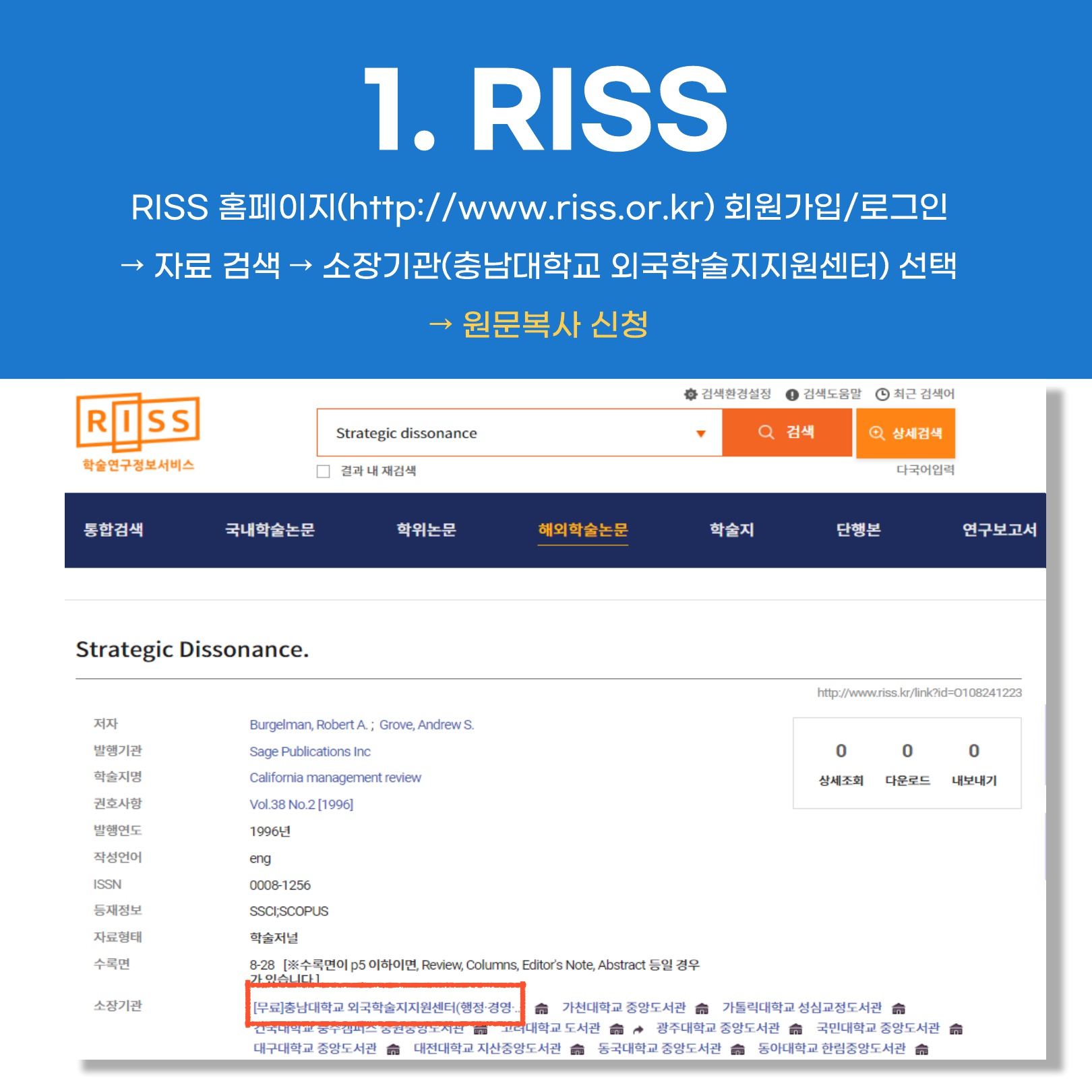 충남대학교 외국학술지지원센터 원문복사 신청 방법 안내