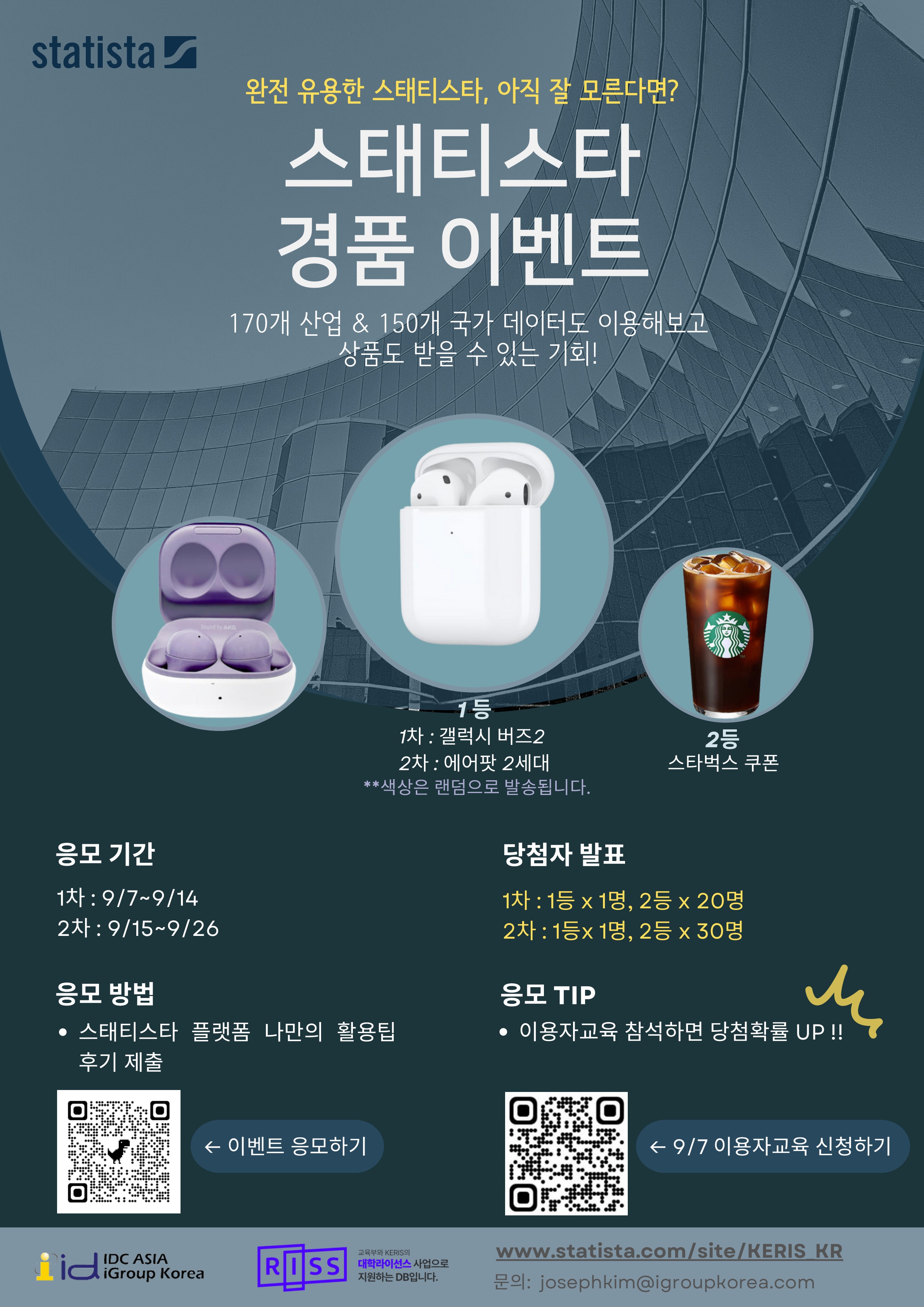| ▶ 20 | 스태티스타 이용교육 이벤트 | 권*흥 | 2023-08-24 | 555 |