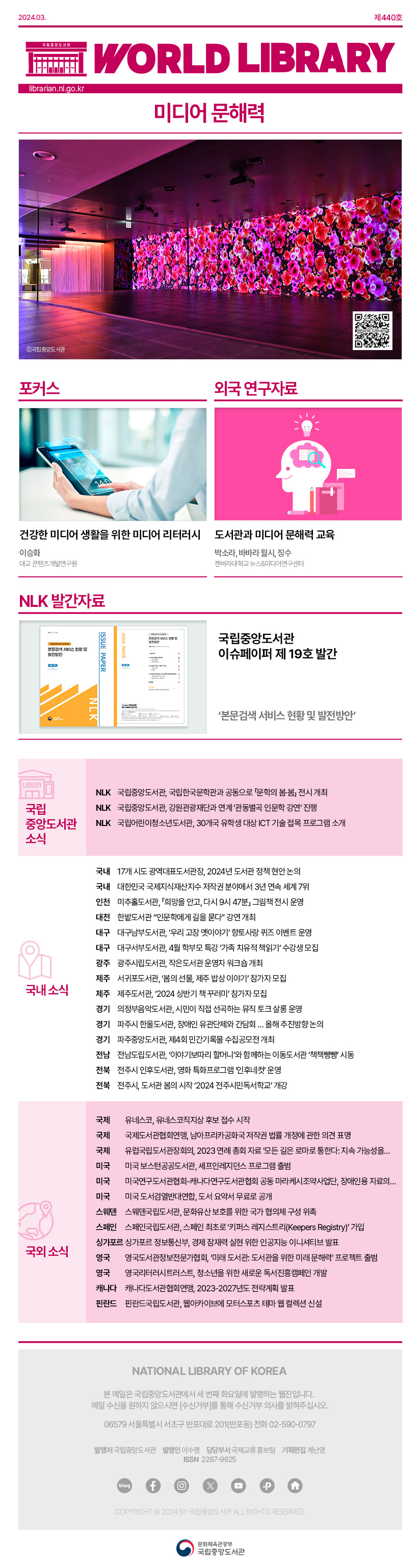 [국립중앙도서관] 월드라이브러리 웹진 440호 : 미디어 문해력